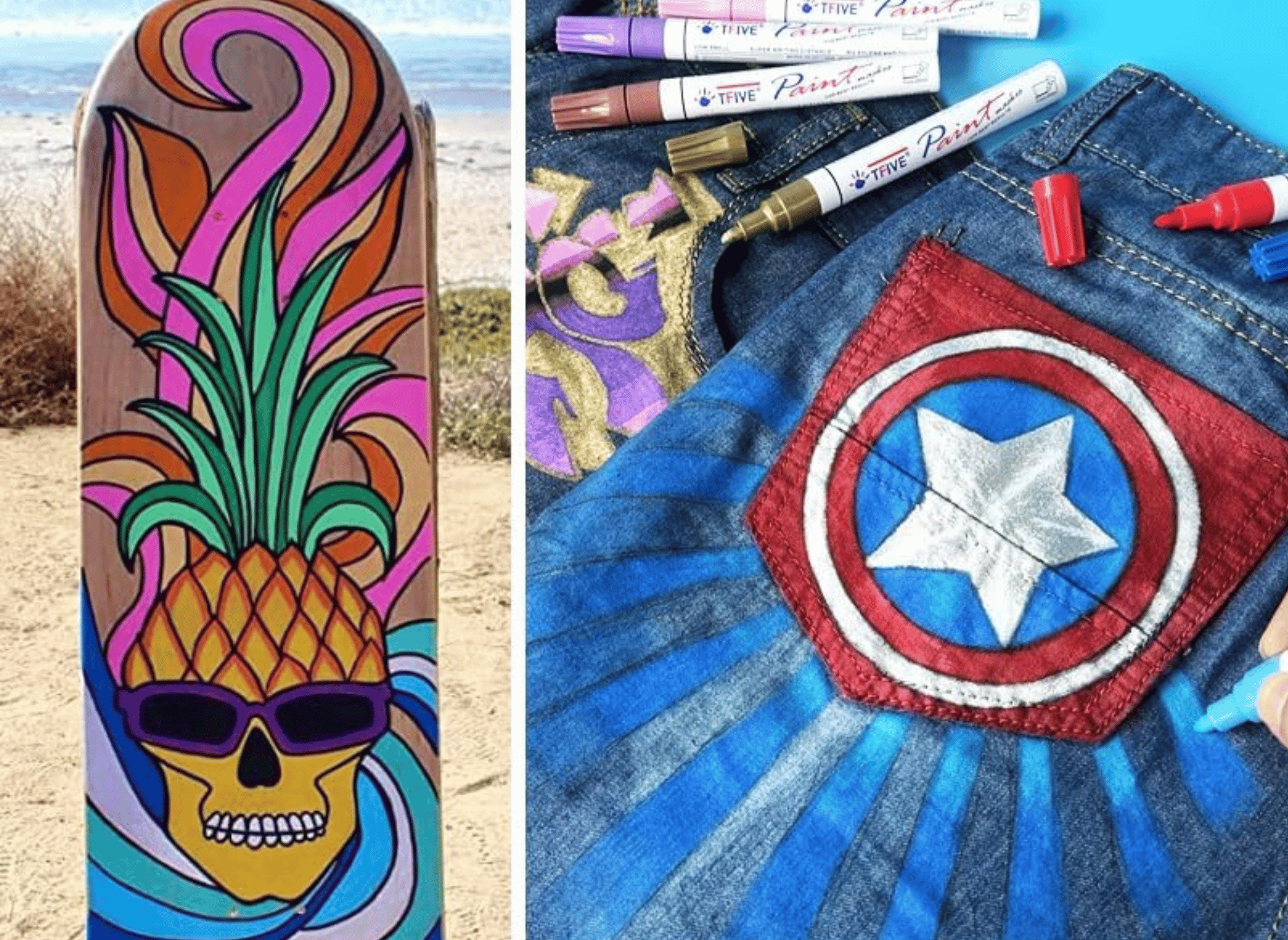 Customizing skateboards, wooden signs, or leather jackets is easy with paint pens. The paint sits on top of the wood grain rather than bleeding into it like a Sharpie would, keeping your lines crisp.