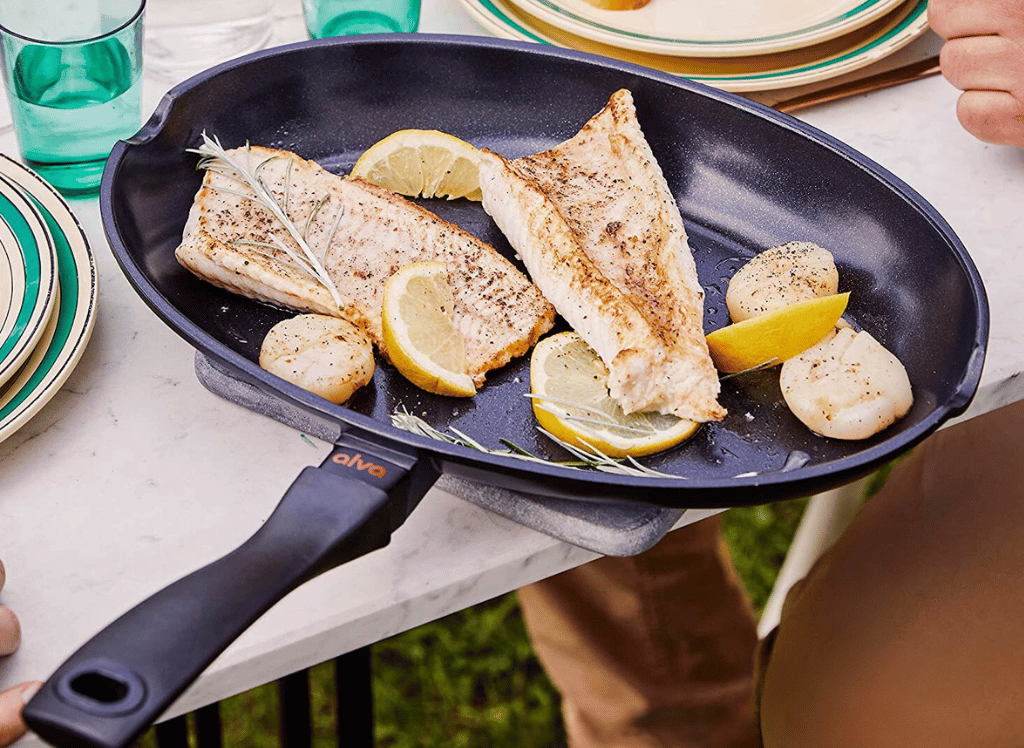 The ALVA Energy Non-Stick Fish Pan is the perfect choice for any home cook looking to prepare delicious meals easily. This premium quality pan is made from cast aluminum and features a three-layer ceramic reinforced non-stick coating that ensures maximum hardness and a longer life span of the non-stick surface.
