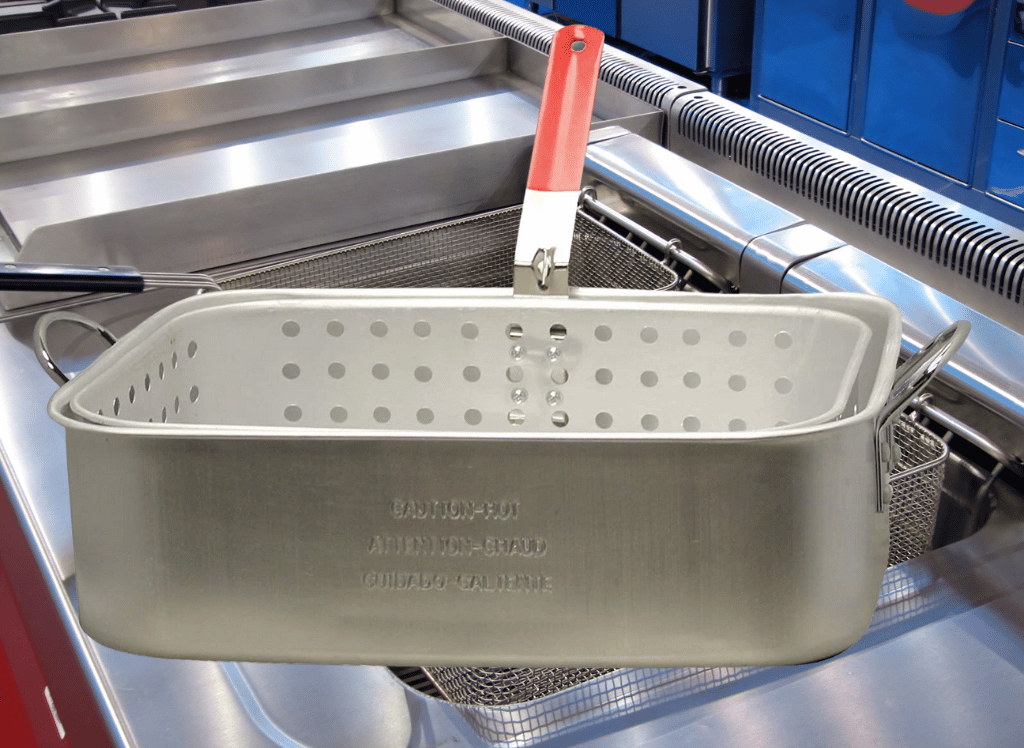 The King Kooker 15-Quart Aluminum Rectangular Fry Pan and Basket is the perfect kitchen accessory for deep frying your favorite food. The rectangular aluminum fry pan has protective handles to ensure safe handling, while the punched aluminum basket ensures even heat distribution throughout its generous 15-quart capacity.