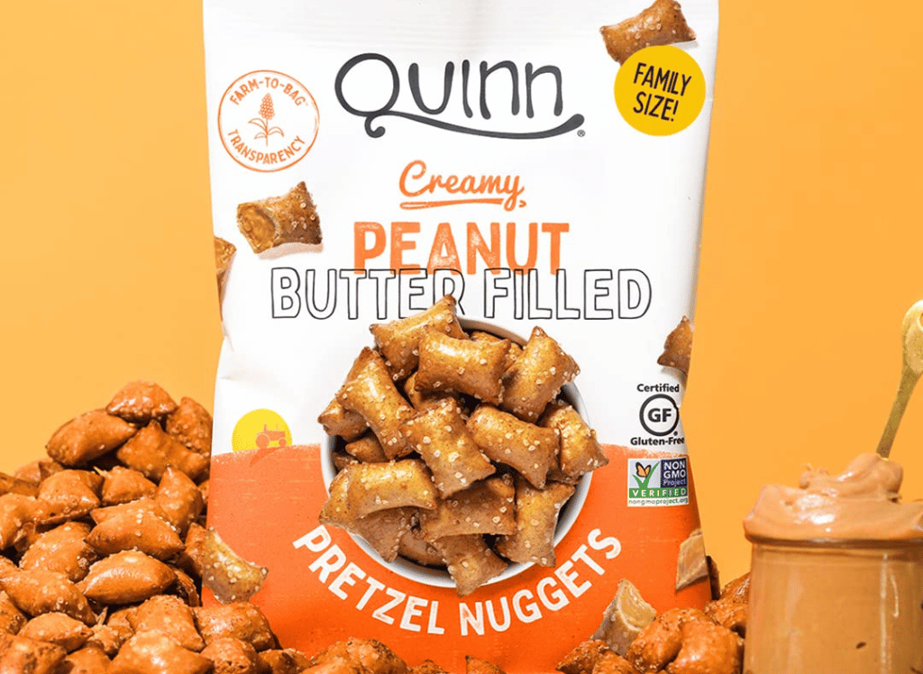 Quinn is the first gluten-free peanut butter-filled pretzel! Enjoy the perfect balance of peanut butter and crunchy pretzel in a family-size bag of 11 oz each. Developed with sorghum, an ancient gluten-free grain and root vegetable, these pretzels provide the great taste you know and love without sacrificing quality ingredients.