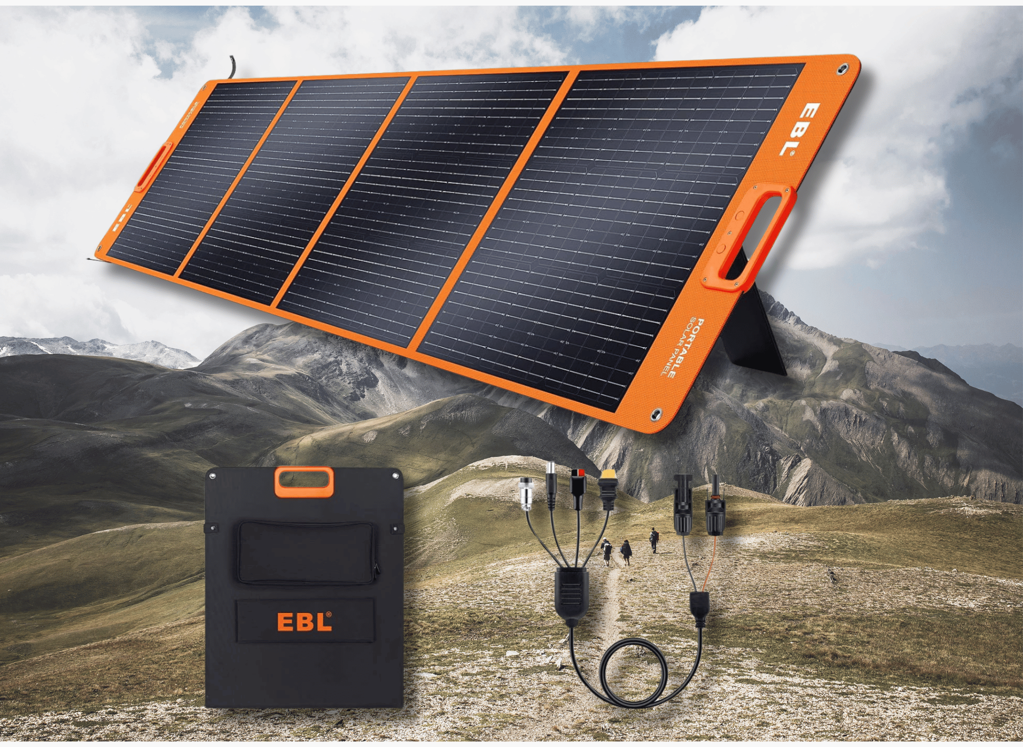 The EBL 200W Portable Solar Panel was brought to you by Renogy, a trusted brand in solar power technology. Made from high-quality monocrystalline silicon, this portable panel measures 25"L x 2.2"W x 21.1"H and weighs just 17.6 pounds, making it easy to carry for all your outdoor adventures.
