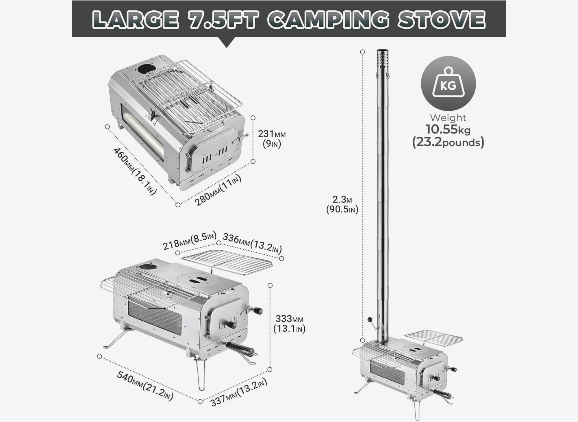 - Adjustable Chimney Height: Customize the 5-section chimney up to a maximum height of 92.5 inches, ensuring optimal ventilation and compatibility with different tent sizes.