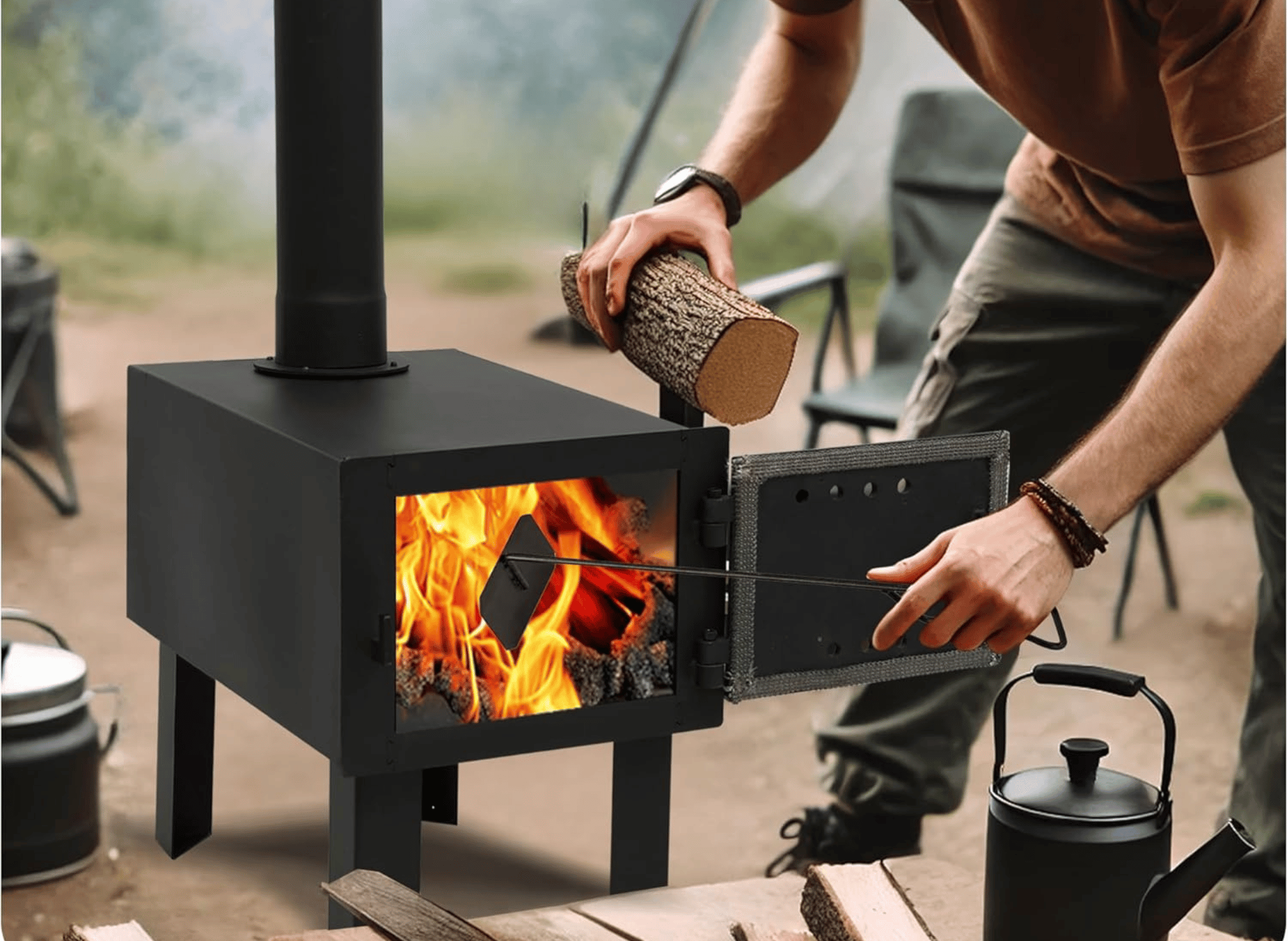 - Camping Wood Stove: Perfect for tent camping, hunting trips, ice fishing, and backyard gatherings where reliable heat and cooking capability are essential.