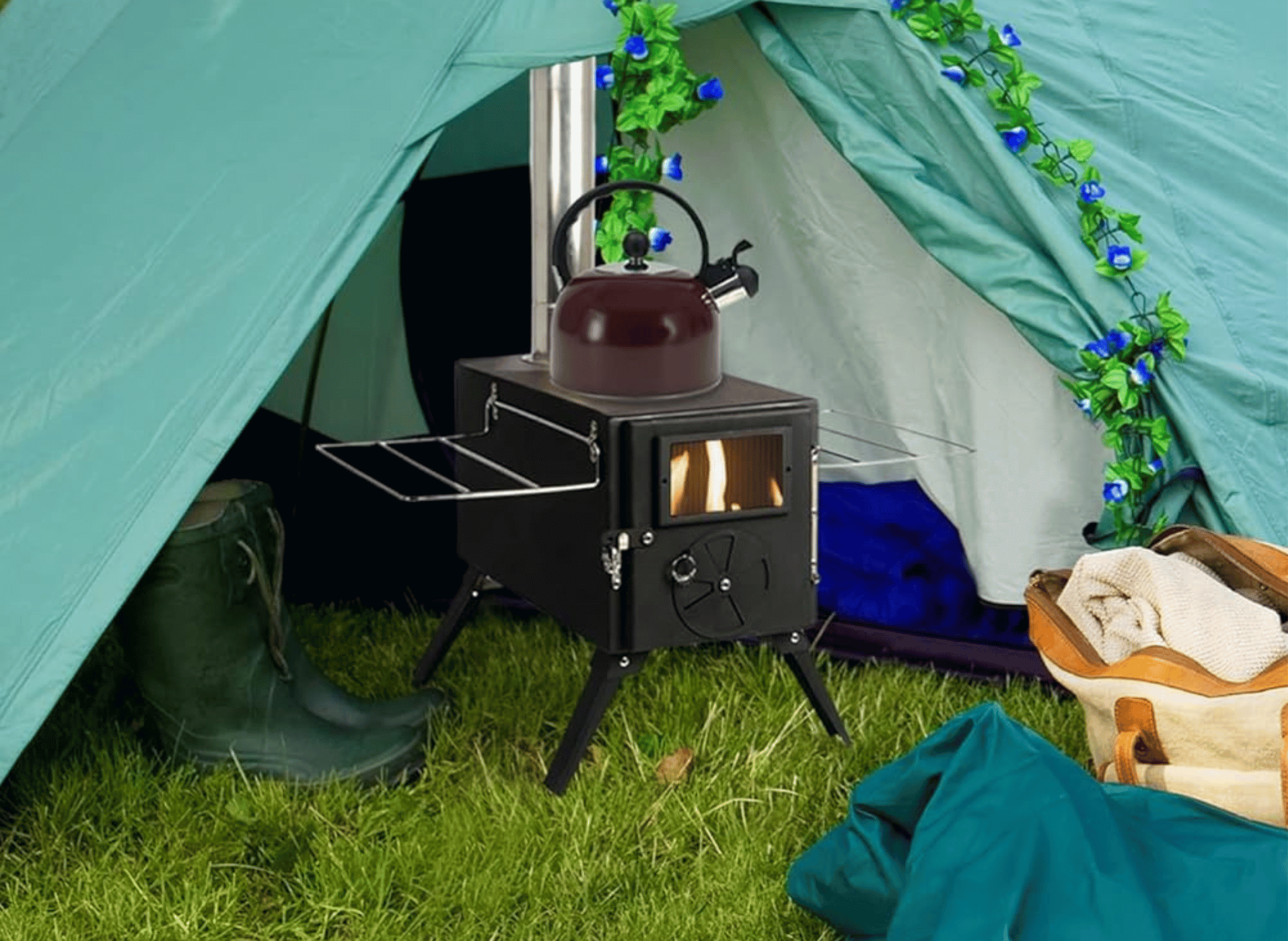 - Efficient Heating: Keep your tent warm and cozy with this wood stove, designed to provide consistent, controlled heat in cold weather conditions.