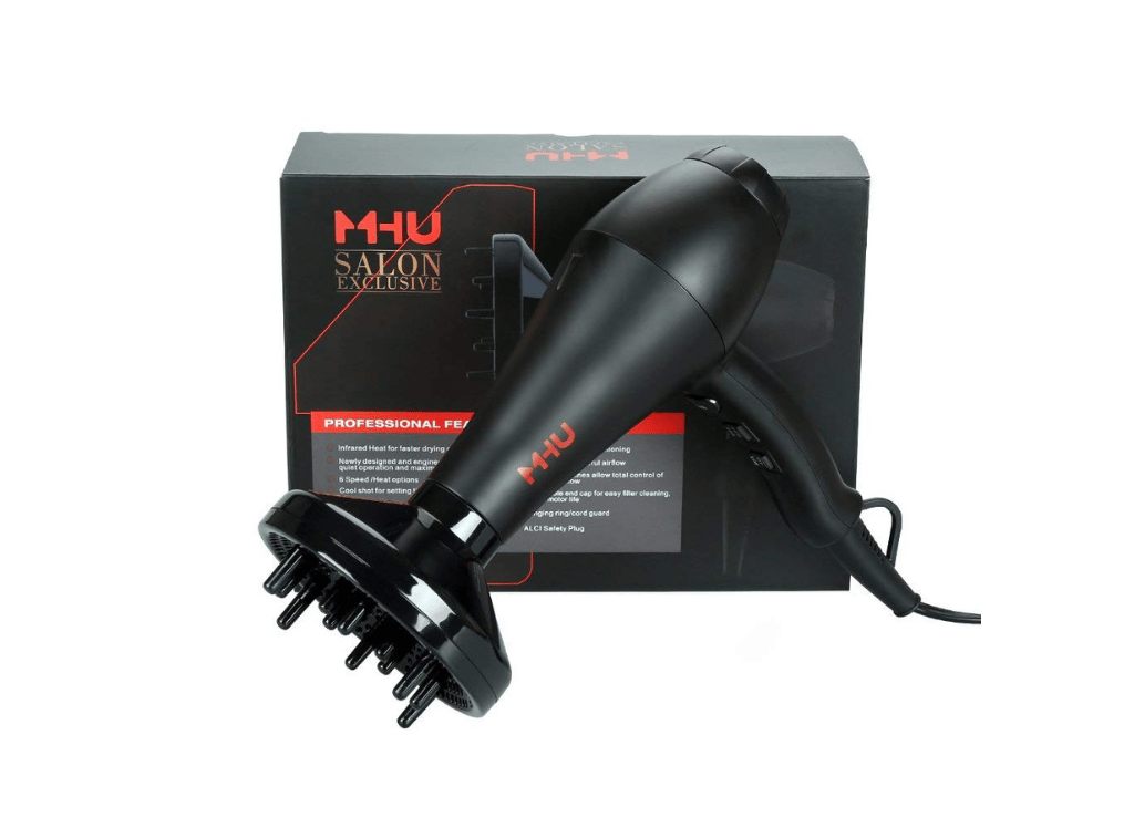 The Far-Infrared Heat and Negative Ion Technology ensures that hair dries fast and prevents frizzing, while the Airflow Concentrator and Diffuser attachments help provide volume, minimize frizz, and accelerate drying, the MHU hair dryer is equipped with a 6-foot cord that has been heat-resistant and comes with an easy grip handle and professional hook for added convenience.
