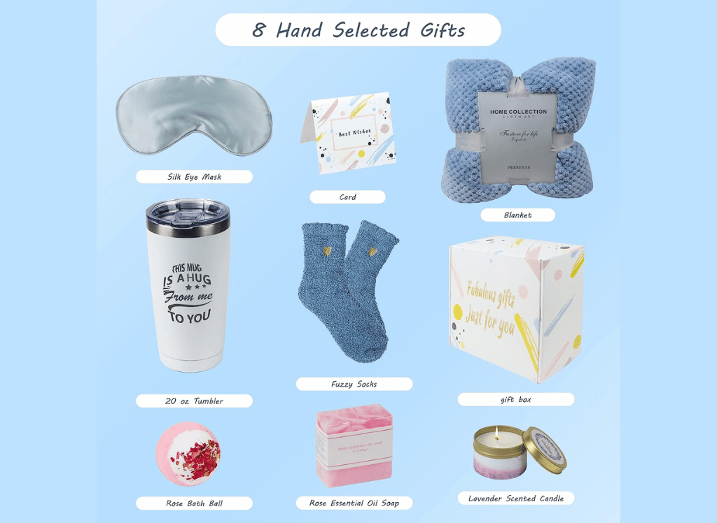 - Comfort and Warmth: The cozy blanket, fuzzy socks, and silk eye mask provide immediate physical comfort, wrapping your loved one in warmth and serenity.