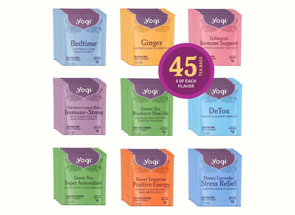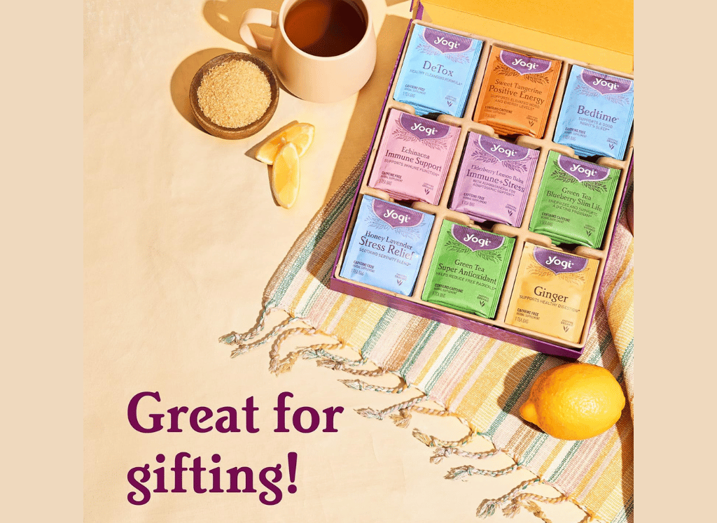 Are you looking for a thoughtful gift to show your loved one how much you care? This special tea sampler contains 9 delicious flavors and a total of 45 tea bags, thoughtfully packaged in a beautiful Yogi tea sample box.