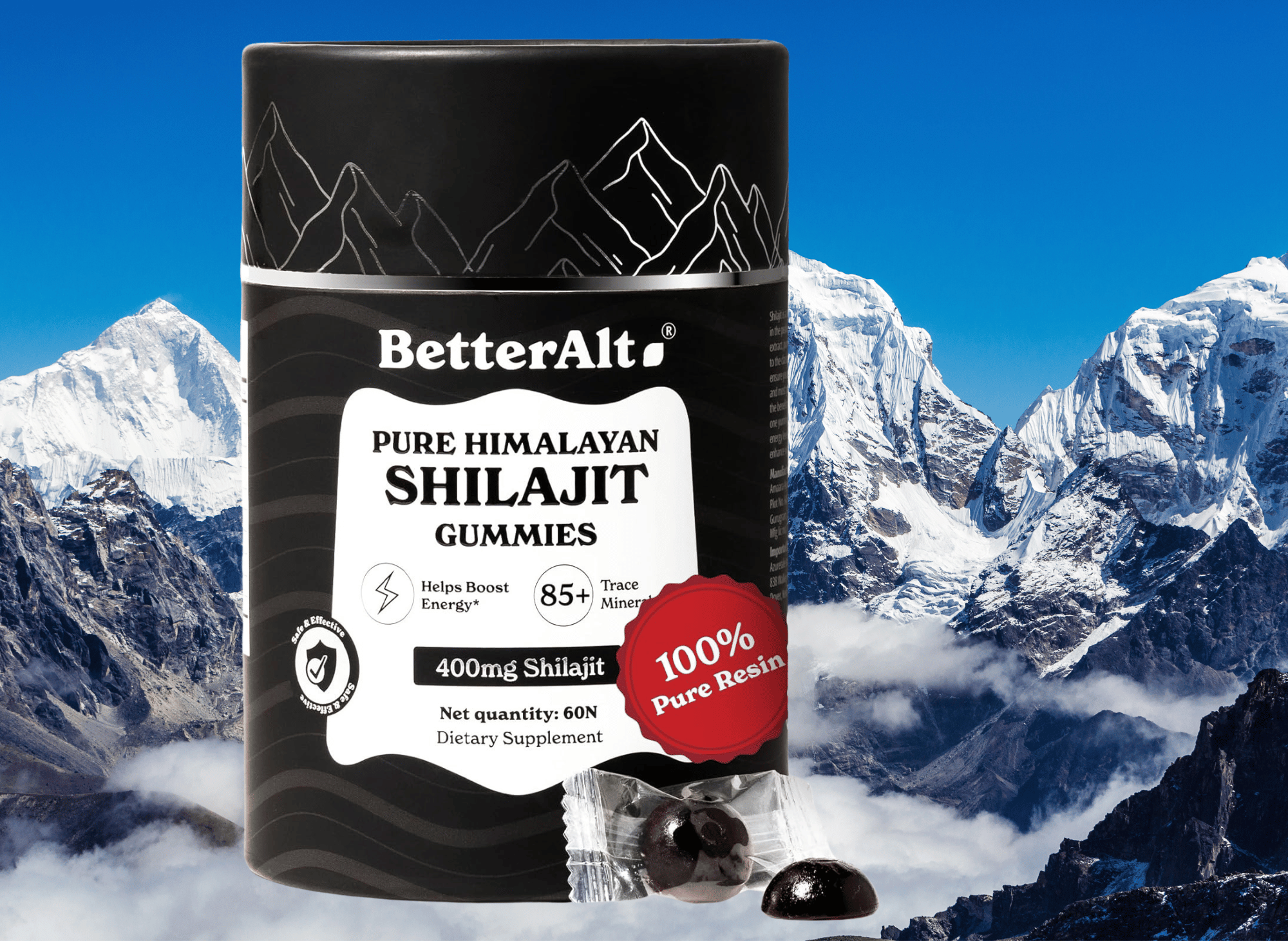 Better Alt Pure Himalayan Shilajit Gummies is a powerful and natural supplement designed to boost energy levels, fortify the immune system, and improve overall vitality. Crafted with over 85 trace minerals, these gummies provide a convenient and delicious way to incorporate the benefits of Shilajit into your daily routine.