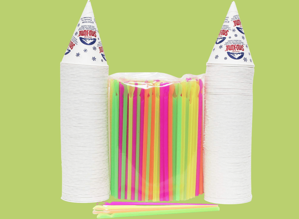 Concession Express has the perfect solution to make your snow cones and shaved ice stand out from the rest. Our set includes both 200 Gold Medal 6oz snow cone cups and 200-8" Neon spoon straws for a complete, professional concession experience. The convenience of these brightly colored spoon straws can't be overstated, featuring an open-ended "spoon" side that makes it easier to scoop out all of the delicious ice and a straw end for easy sipping. Step up your concession game with quality supplies from Concession Express!