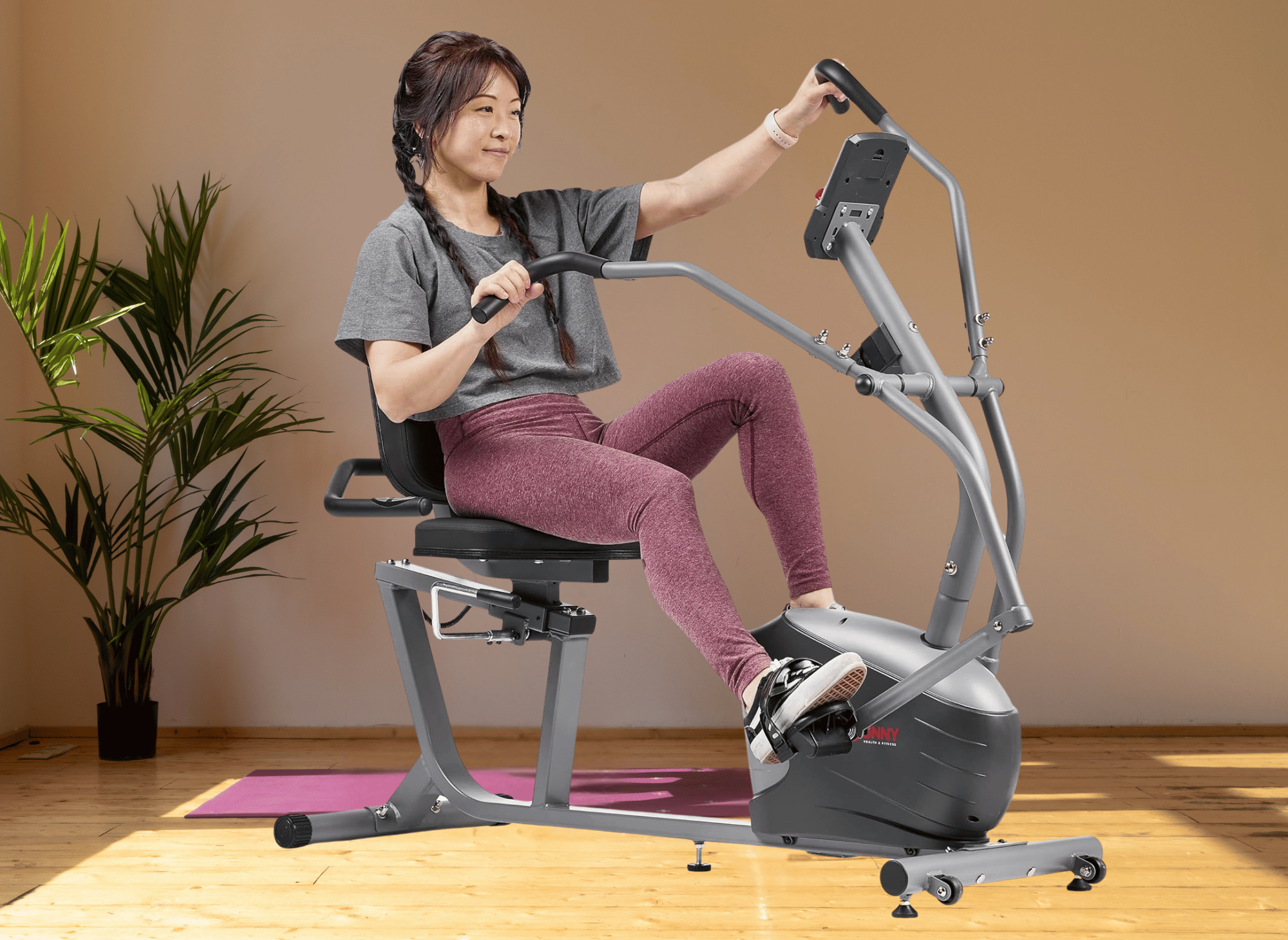 At Sunny Health & Fitness, we stand behind the quality of our products. The Cross Trainer Magnetic Recumbent Bike with Arm Exercisers (SF-RB4936) comes with a 3-year warranty, covering defects in materials and workmanship.