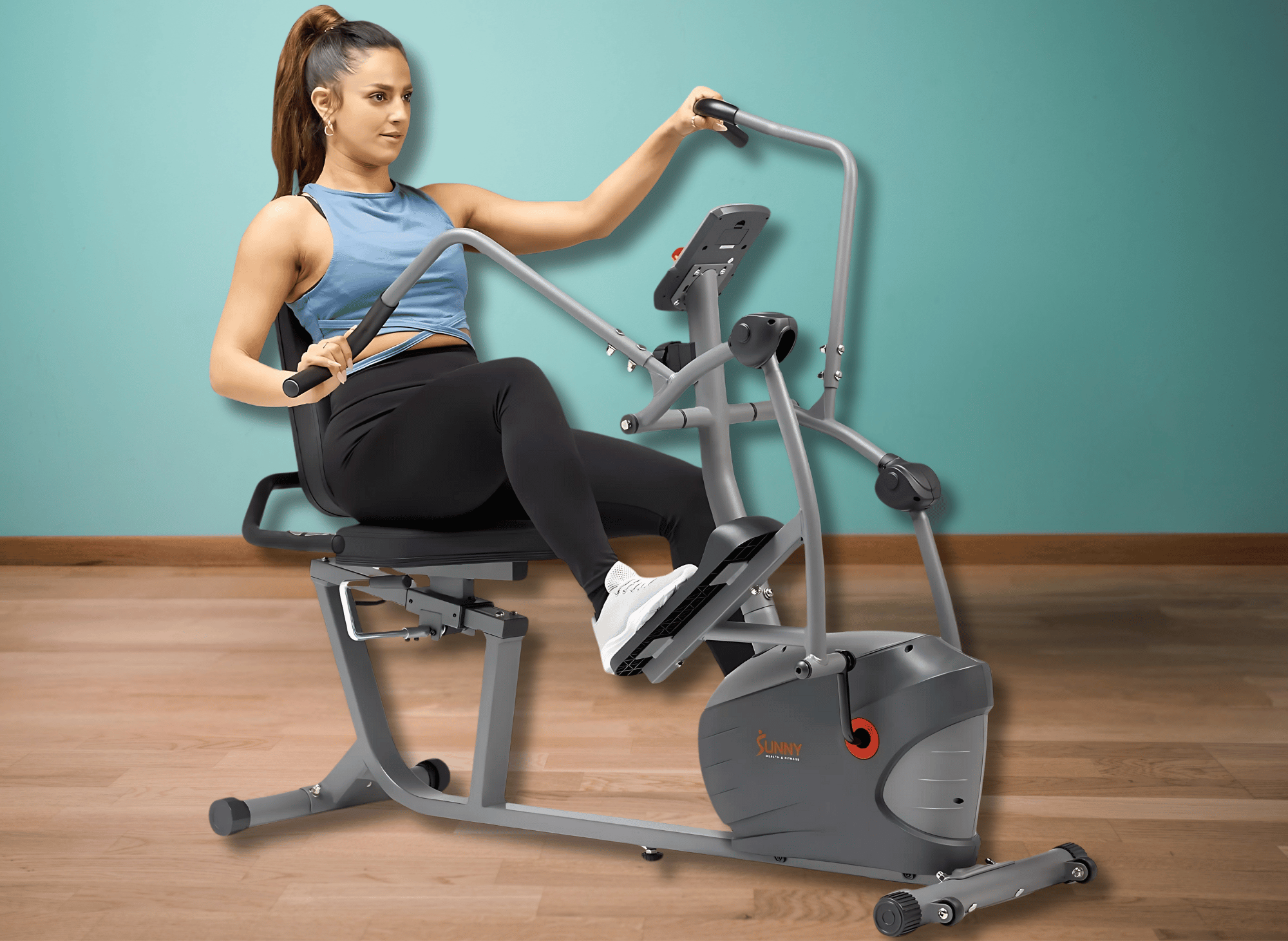 The Sunny Health and Fitness Recumbent Bike takes things further by offering moveable handles for simultaneous upper and lower body workouts. You can target multiple muscle groups efficiently in one workout.