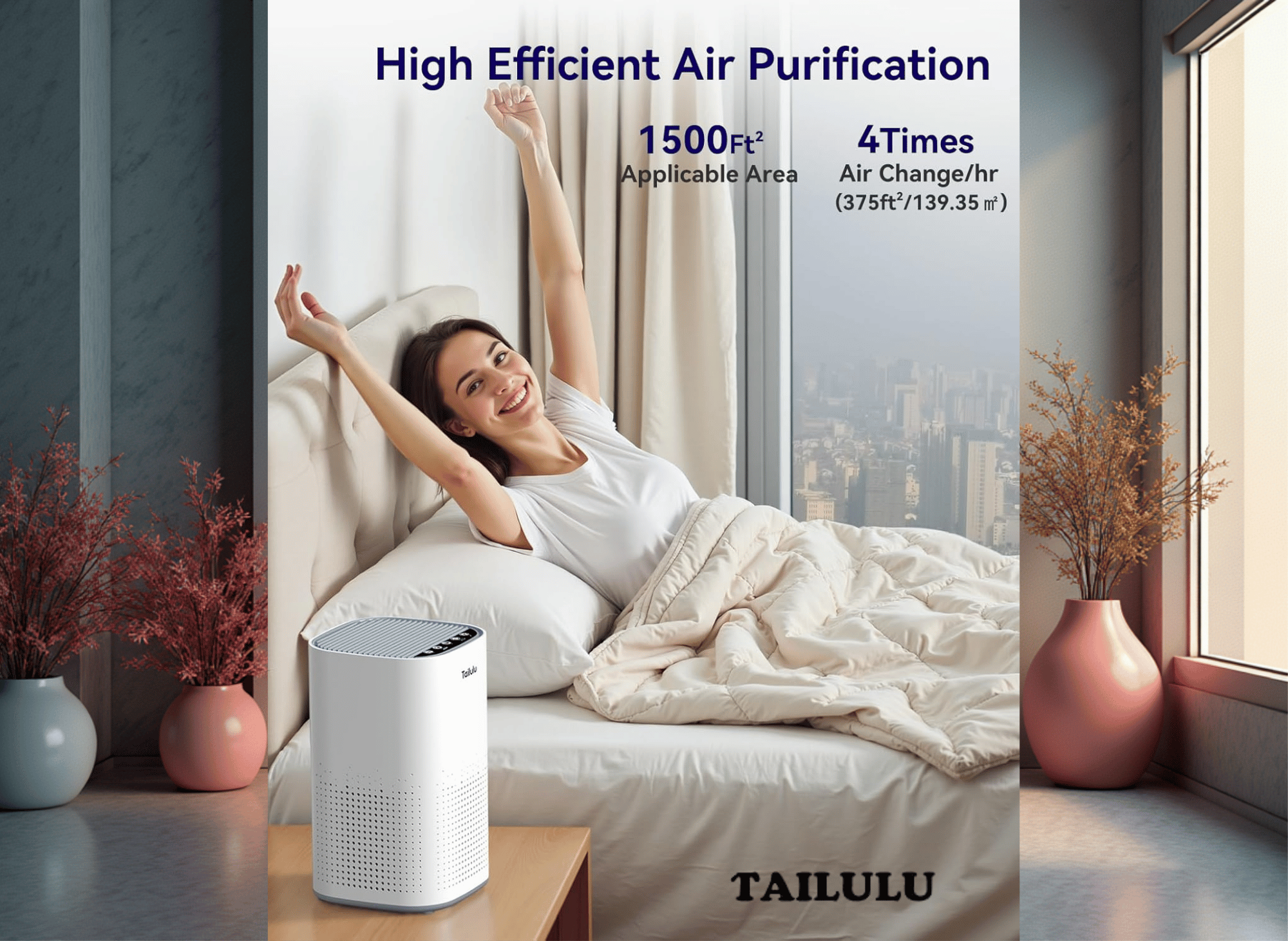 Experience the perfect blend of power and tranquility with the Tailulu H13 True HEPA Air Purifier. Designed for large spaces up to 1,500 square feet, this advanced air cleaning system transforms your home environment while operating at whisper-quiet levels.