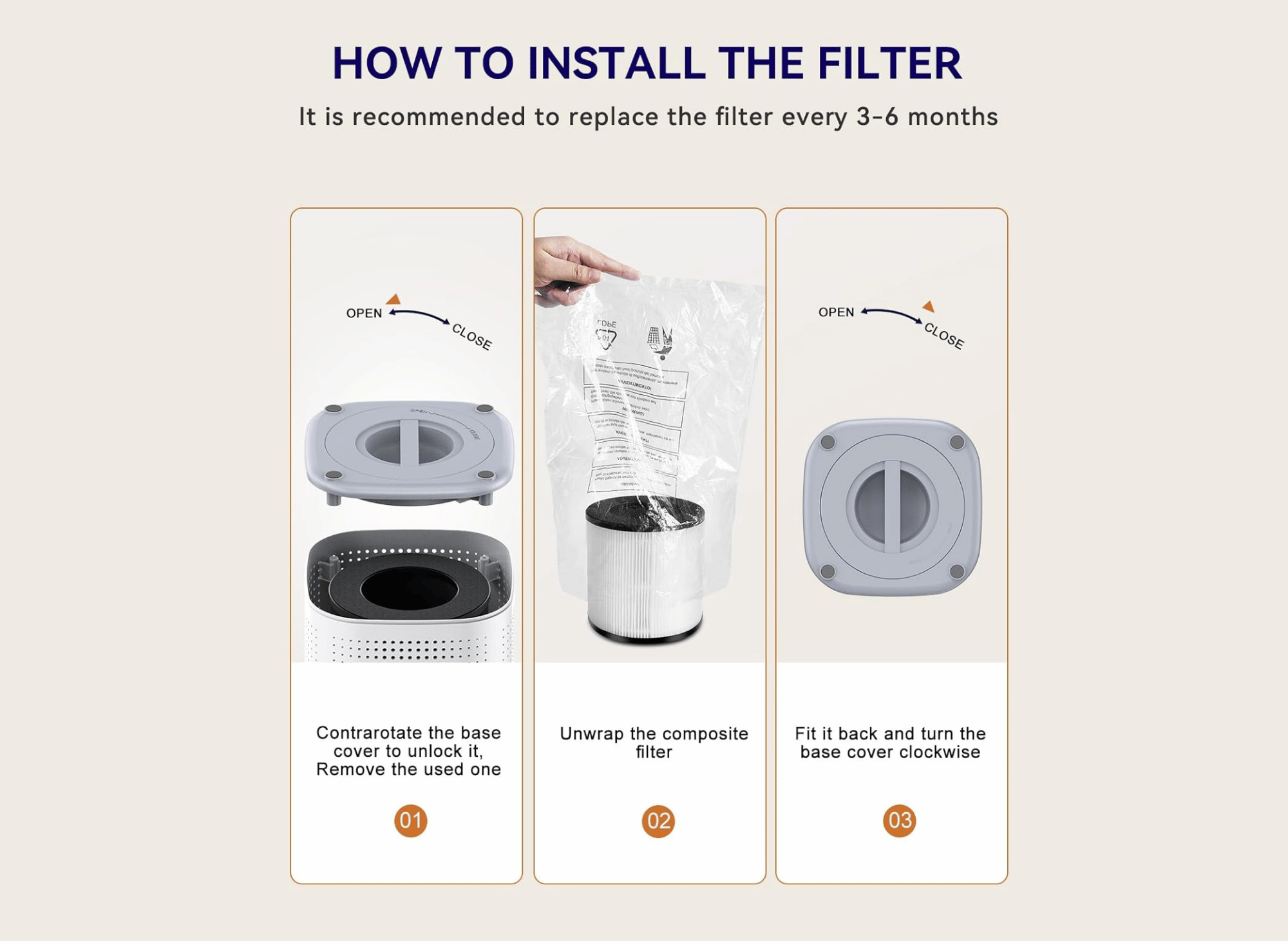 - Activated Carbon Filter: This layer is designed to tackle odors and gases. It effectively absorbs smells from pets, cooking, and smoke, as well as volatile organic compounds (VOCs) released from cleaning products and furniture.
