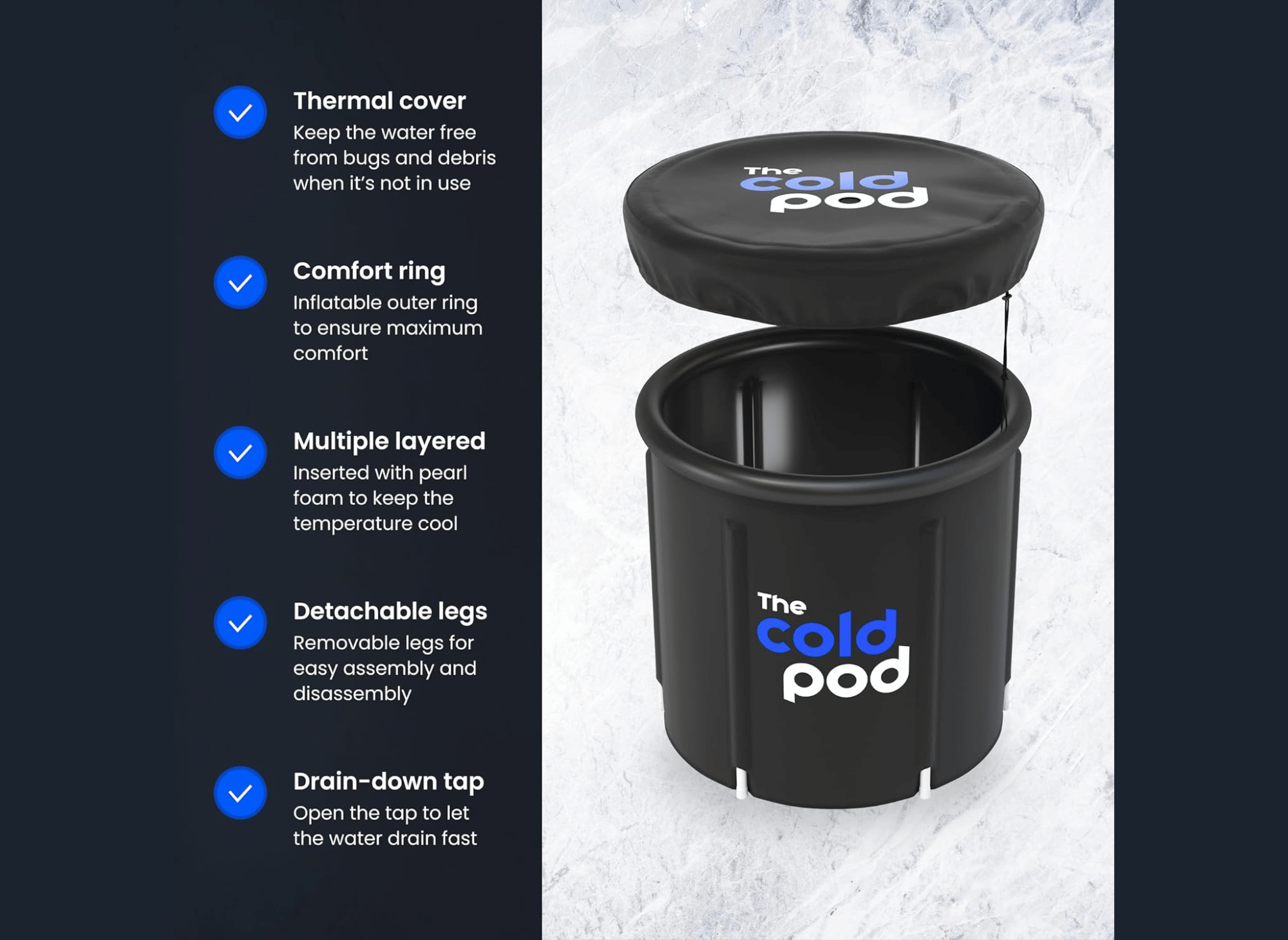 Ice baths were bulky, messy, and required a lot of preparation for years. Enter the Cold Pod, a portable ice bath solution that solves many barriers to incorporating cold water therapy into your life. Designed with athletes and recovery seekers in mind, the Cold Pod is lightweight, durable, and easy to use. An insulated cover helps maintain optimal water temperatures for cold therapy.