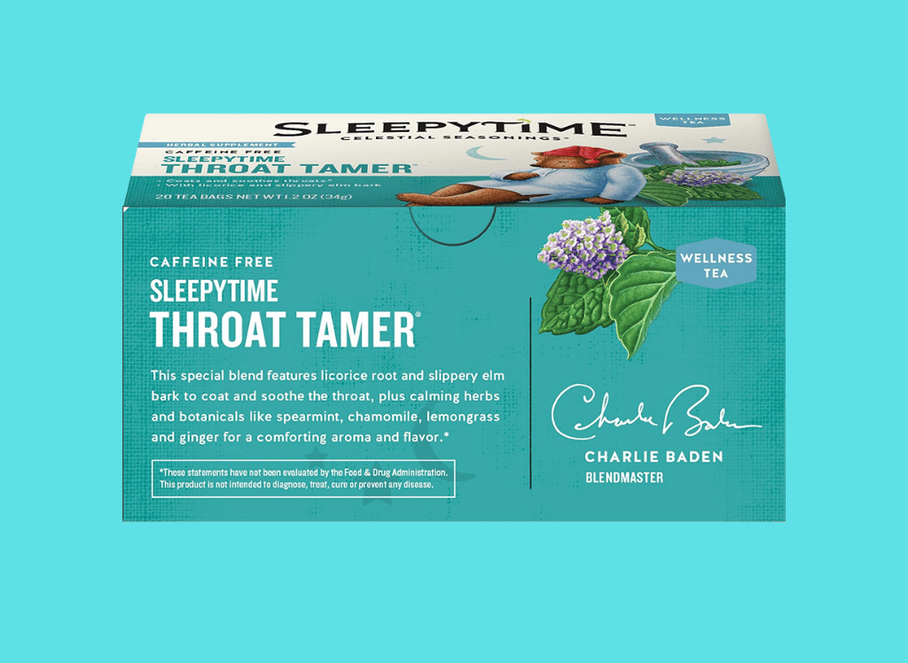 Celestial Seasonings Sleepytime Throat Tamer Tea is a unique blend of licorice root and slippery elm bark that coats and soothes the throat. This caffeine-free and gluten-free tea contains chamomile extract, mint leaves, and other herbs, offering an herbal flavor without any artificial flavors, colors, or preservatives. Whether you need to relax at bedtime, or just want to enjoy a cup of tea free from additives, Celestial Seasonings Sleepytime Throat Tamer Tea is sure to be your ideal choice!