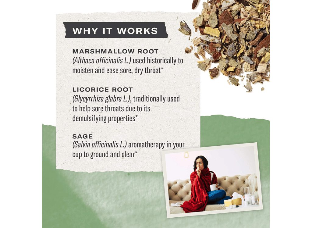 Throat Soother Tea is an excellent choice for those looking to soothe their sore throat and reduce inflammation. It contains natural ingredients like licorice root, marshmallow root, and slippery elm that provide soothing relief from discomfort.