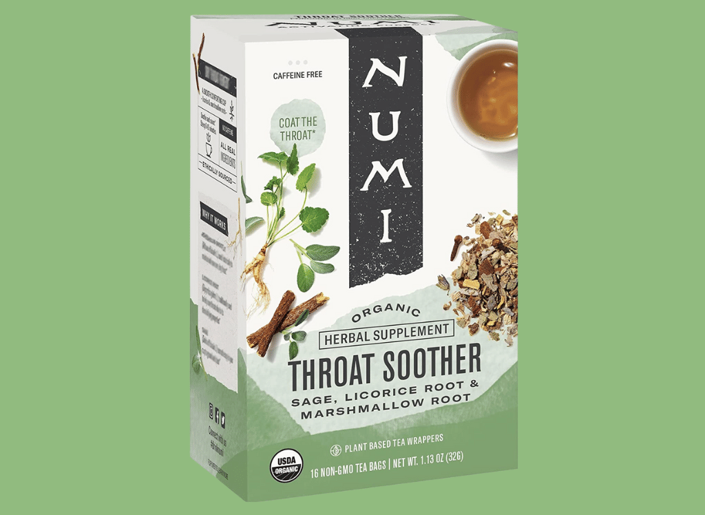 Numi's Organic Throat Relief Tea is an herbal blend formulated with natural ingredients to help soothe cold and flu symptoms. Sage, licorice root, marshmallow root, cinnamon, and organic clove bud come together for a comforting infusion that helps moisten and coat the throat. The organic black, green, white, Puerh, rooibos, herbal, and turmeric teas are of premium quality as they contain only 100 percent real fruits flowers, and spices with no added flavorings. Each tea bag contains perfectly brewed full leaf quality in a plant-based envelope to ensure freshness every time you steep it in hot water. Enjoy this delicious tea sweetened with honey or lemon!
