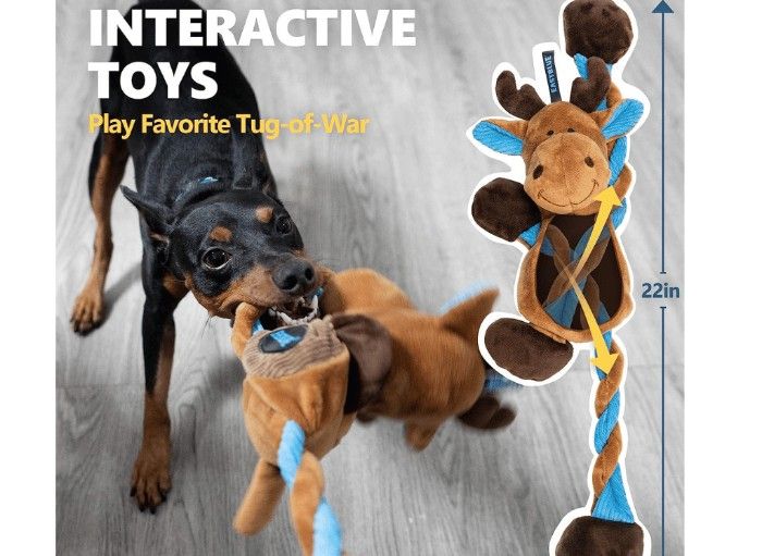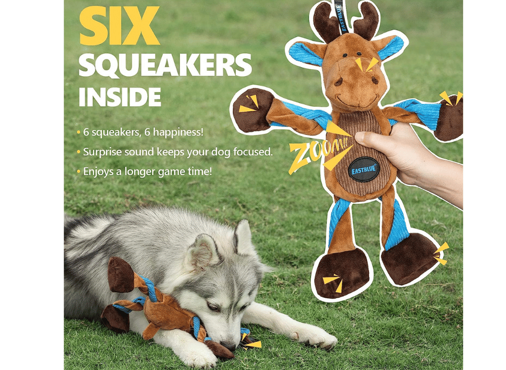 As a bonus, the unique limb-pulling design allows the arms or limbs of your puppy stuffed animal toy to be pulled back and forth through the body of the toy – adding more excitement to their playtime and keeping them engaged for even longer periods! Get your durable plush moose today and give your pup something special to bark about!