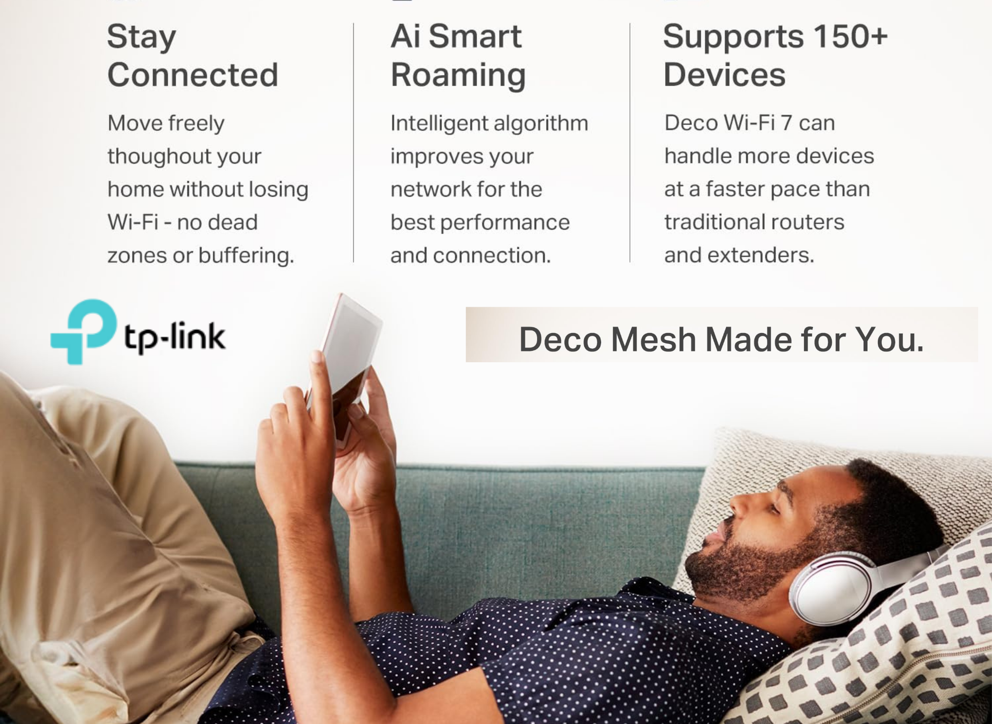 A primary reason people switch to a mesh network is to eliminate dead zones. The Deco BE23 3-pack is built to provide uninterrupted wifi across an impressive 6,500 square feet. Deco mesh WiFi systems are designed for whole-home coverage, ensuring seamless connectivity in every room.