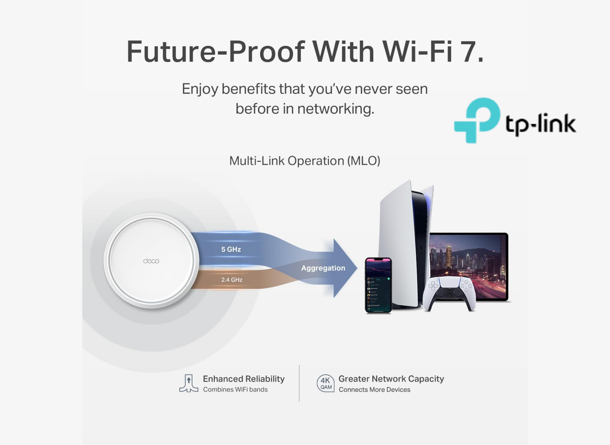 Under the hood, this TP-Link Deco model boasts advanced hardware that maximizes efficiency. Multi-Link Operation (MLO) allows compatible Wi-Fi 7 clients to aggregate bands, meaning stronger, more reliable connections. Additionally, the system uses 4K-QAM technology. This packs 20% more data into every transmission compared to previous generations, greatly accelerating downloads and uploads.