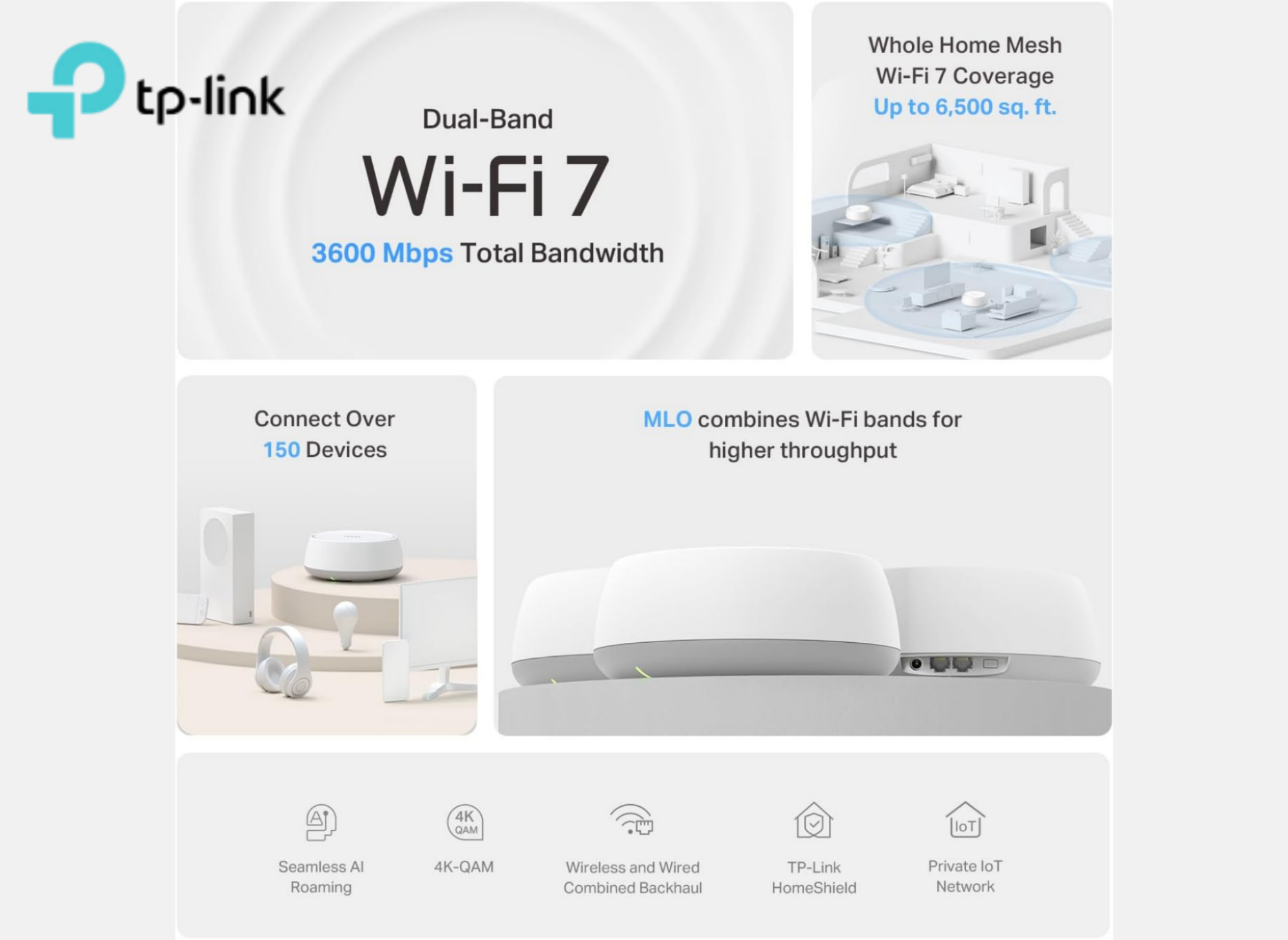 4-Stream 3.6 Gbps, 160 MHz | Covers up to 4,500 sq. ft.Ft | 2× 2.5G Ports Wired Backhaul | VPN, MLO, AI-Roaming, HomeShield, 2-Pack