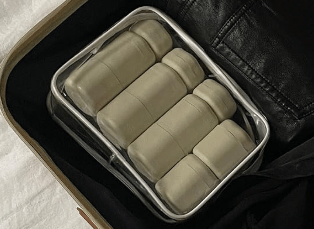 What sets these travel containers apart is their innovative magnetic design, allowing them to be connected vertically or horizontally for easy storage. Each container also comes with interchangeable labeled tiles, including options for shampoo, conditioner, body wash, moisturizer, cleanser, a pill icon and one blank tile. This allows for seamless swapping between The Flex Small, The Flex Medium, and The Flex Large Capsules.