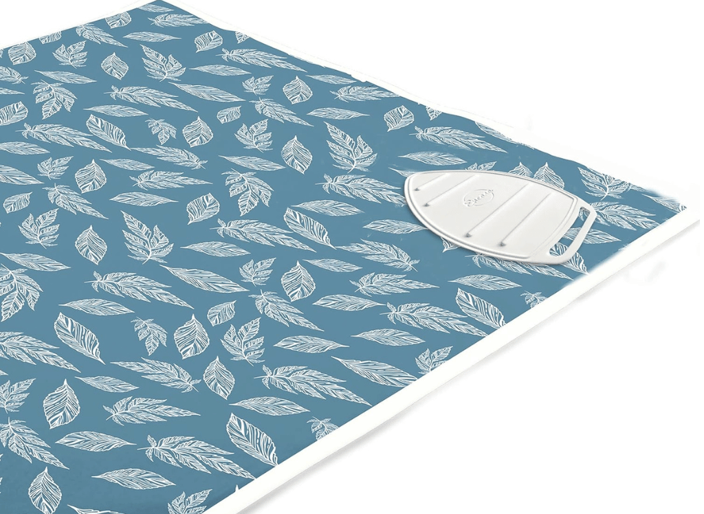 It features a silicon mat in one corner that keeps the hot iron secure and a scorch-resistant fabric that does not easily discolor. The fiber pad also acts as a protective layer for your table or bed, preventing any burning while allowing steam to pass through and holding heat for quick ironing.