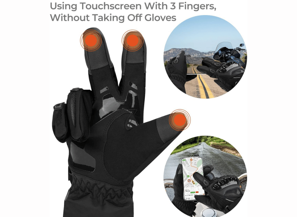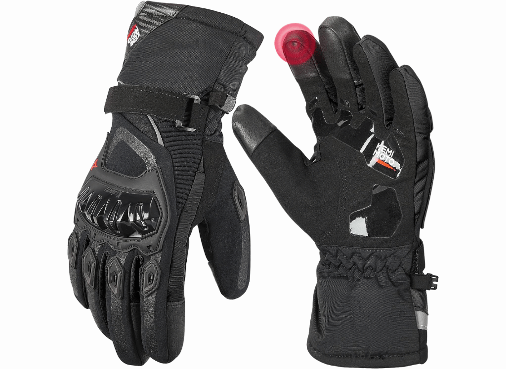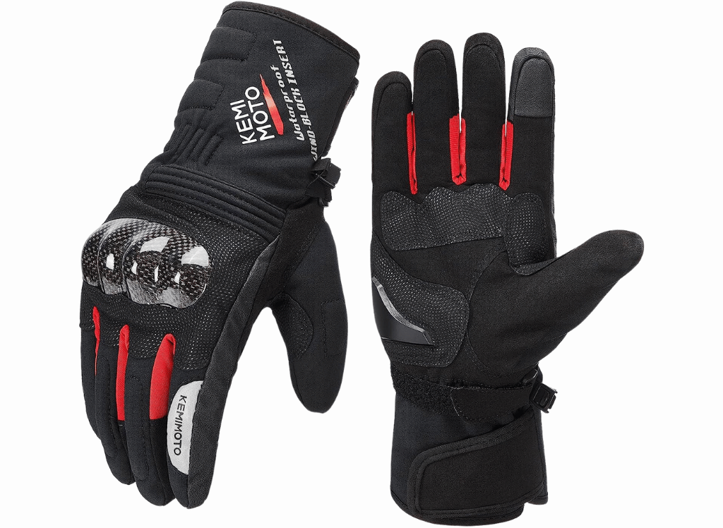 Motorcycle gloves have been around for many years and are used by both men and women. They are designed to protect the hands from the cold, wind, and rain while riding a motorcycle. The Kemimoto winter motorcycle gloves are made from conductive touchscreen leather, so you can use your mobile phone or navigation device without restriction. They also have hard armor on the back of the hand to protect your hands from bumps and abrasions if you fall.