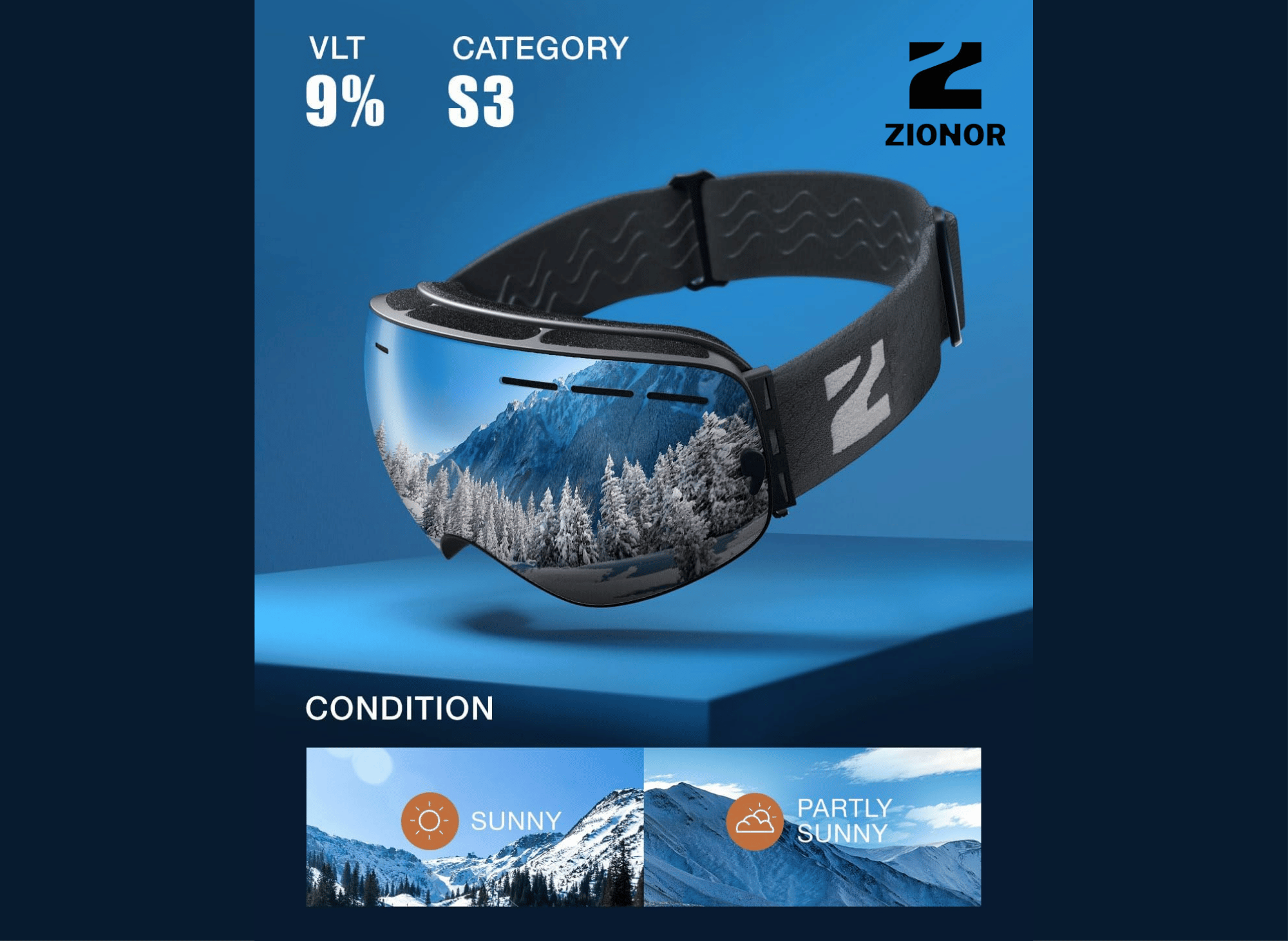 The ZIONOR X is available in a range of Visual Light Transmission (VLT) percentages, making it suitable for everything from bluebird days to night skiing.