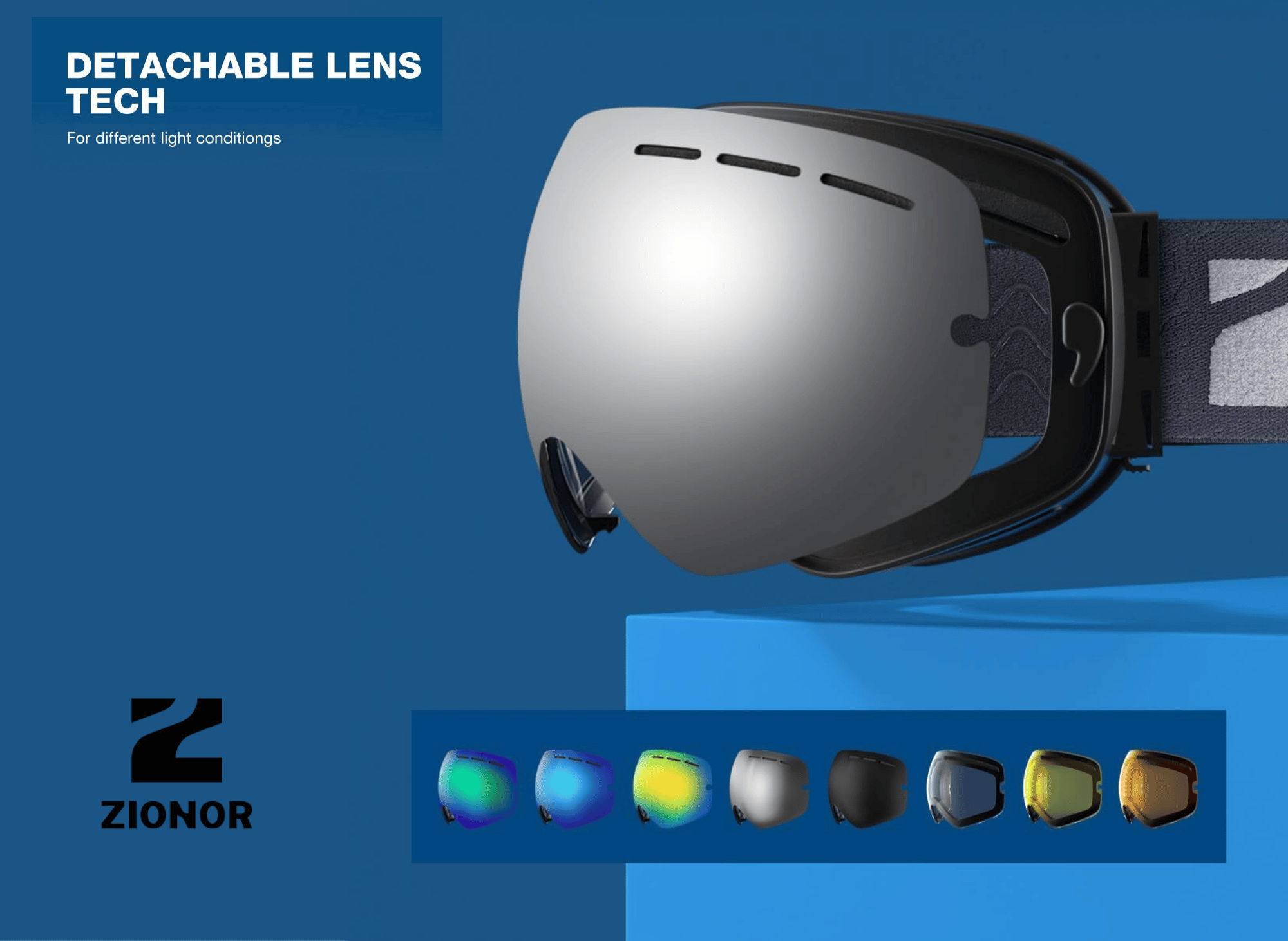 Yes, the ZIONOR X features a detachable lens system. This allows you to swap lenses for different weather conditions (e.g., swapping a dark lens for a yellow one for night skiing) or replace a lens if it gets scratched, without buying a whole new frame.